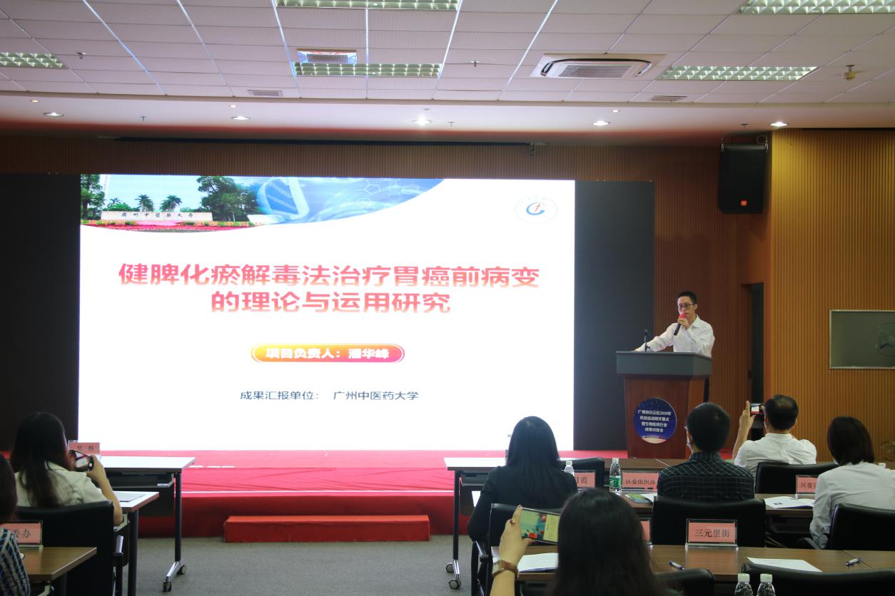 在本次成果对接会上,林传权副研究员代表潘华峰教授团队作《健脾化瘀解毒法治疗胃癌前病变的理论与运用研究》的成果展示,引起了与会代表们的热烈反响。潘华峰教授团队长期致力于胃癌前病变研究,坚持采用“病-证-方-药”结合治法,从多角度开展中医药防治脾胃病研究,从实验到临床,再由临床到成果转化,响应《国家创新驱动发展战略纲要》,不断探索产学研深度融合的新思路,新方向。
