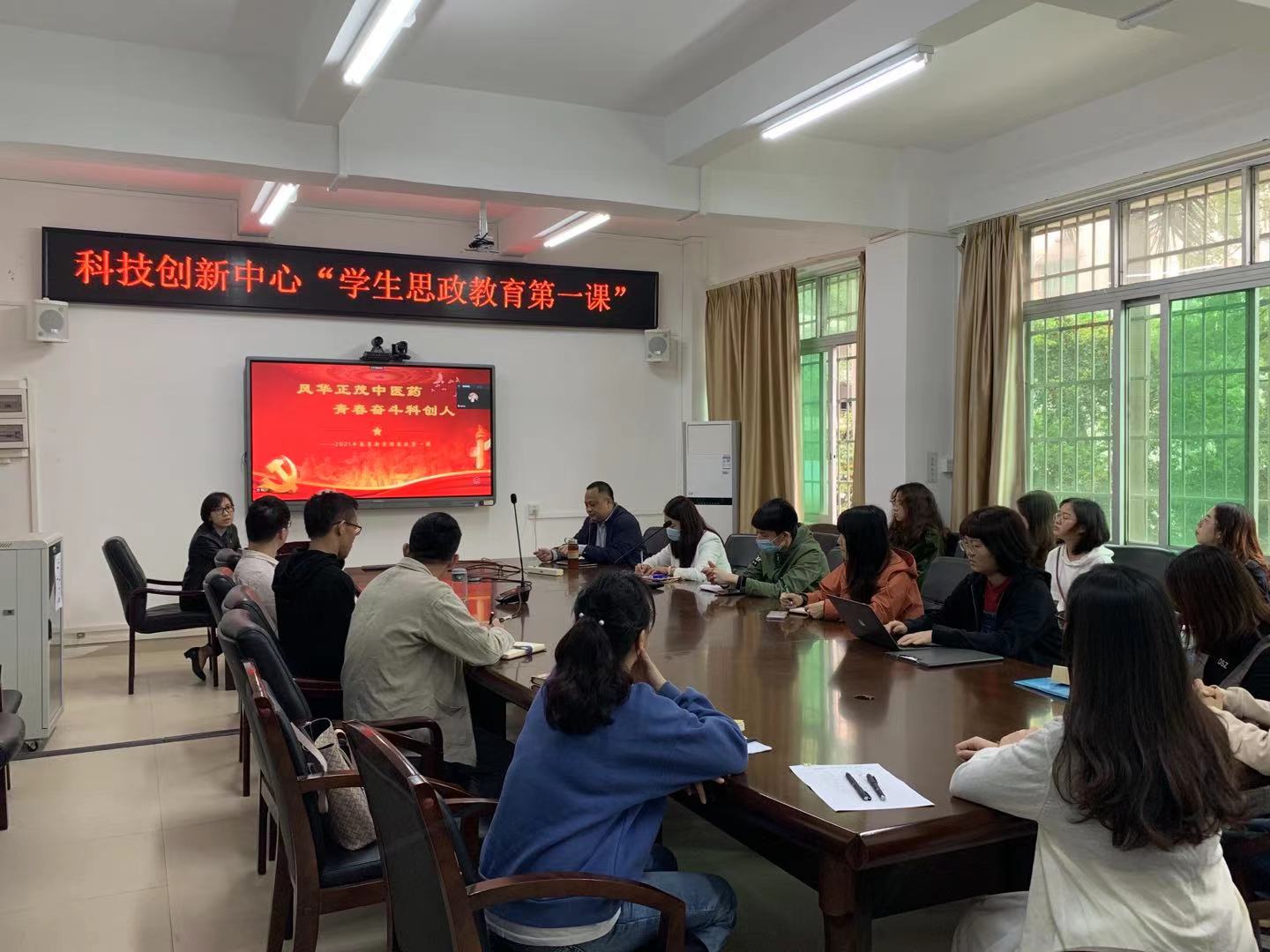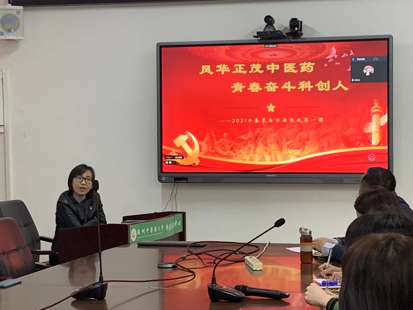 3月11日上午,科技创新中心党总支书记阎敏以《风华正茂中医药,青春奋斗科创人》为题,为中心学生讲授思政第一课。