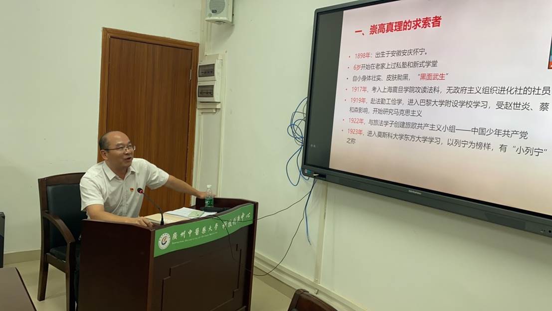 百年征程波澜壮阔,百年初心历久弥坚。中国共产党从诞生之日起,无数革命前辈以革命理想高于天的忠诚、打铁必须自身硬的干净、越是艰险越向前的担当,为后辈树立了一个个勤廉风范。最后李伟荣以一首自题诗“百年风云显忠诚,干净担当铁骨铮。勤廉风范永不逝,勇立潮头新征程”作为结束语激励全体党员:新的百年征程已经开启,只有赓续红色血脉,担当起传承祖国中医药事业的育人使命,方能告慰先烈、无愧历史、不负人民。