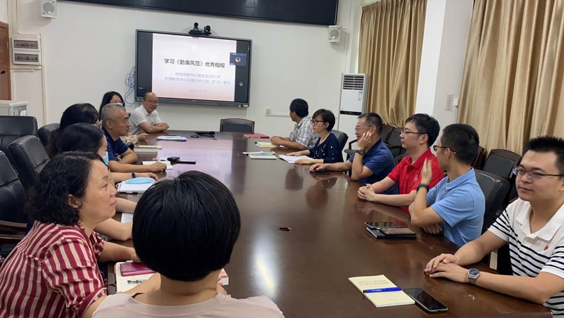 9月18日下午,科技创新中心党总支在三元里校区开展2021年纪律教育学习月活动,召开第一期理论中心组(扩大)学习会议。会议由党总支书记阎敏主持,党总支纪检委员、教工第一党支部书记李伟荣领学《勤廉风范》优秀楷模,总支委员和各支部委员参加。