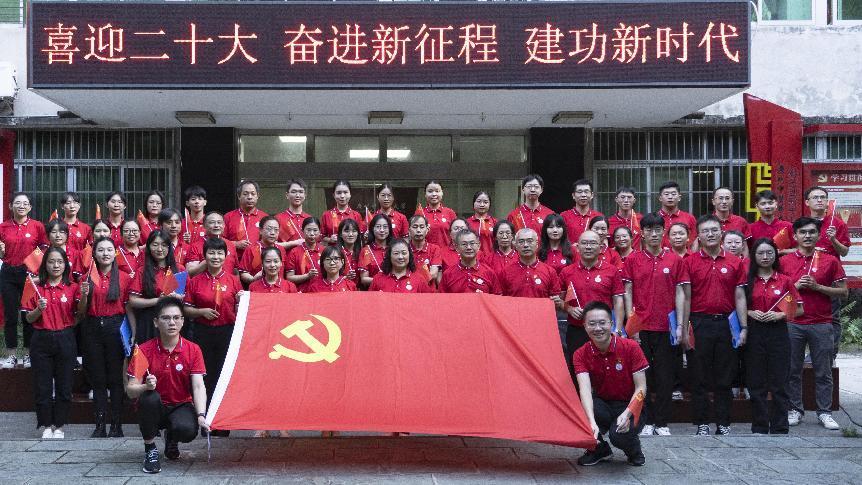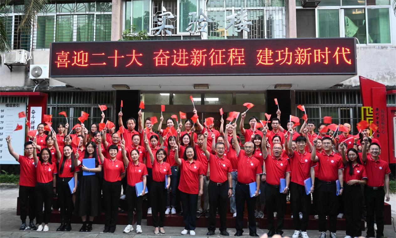10月14日下午,科技创新中心在三元里校区实验楼前举行“喜迎二十大,奋进新征程,建功新时代”系列活动之经典歌曲合唱与诗歌朗诵,潘华峰副校长出席活动,与中心党员师生一同歌颂党的光辉历程,喜迎党的二十大胜利召开。