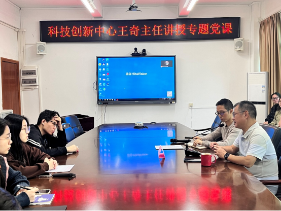 12月5日下午,科技创新中心执行主任王奇在三元里校区实验楼二楼会议室为中心学生第一党支部党员讲授专题党课《解放思想 转变学习作风再出发》,巩固学习贯彻习近平新时代中国特色社会主义思想主题教育成果,高质量推进学校“转作风、重实干、开新局、争一流”解放思想再出发大讨论工作。