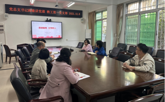 12月8日上午,科技创新中心党总支书记阎敏在三元里校区实验楼二楼大会议室为中心教工第一党支部党员讲授党课。
