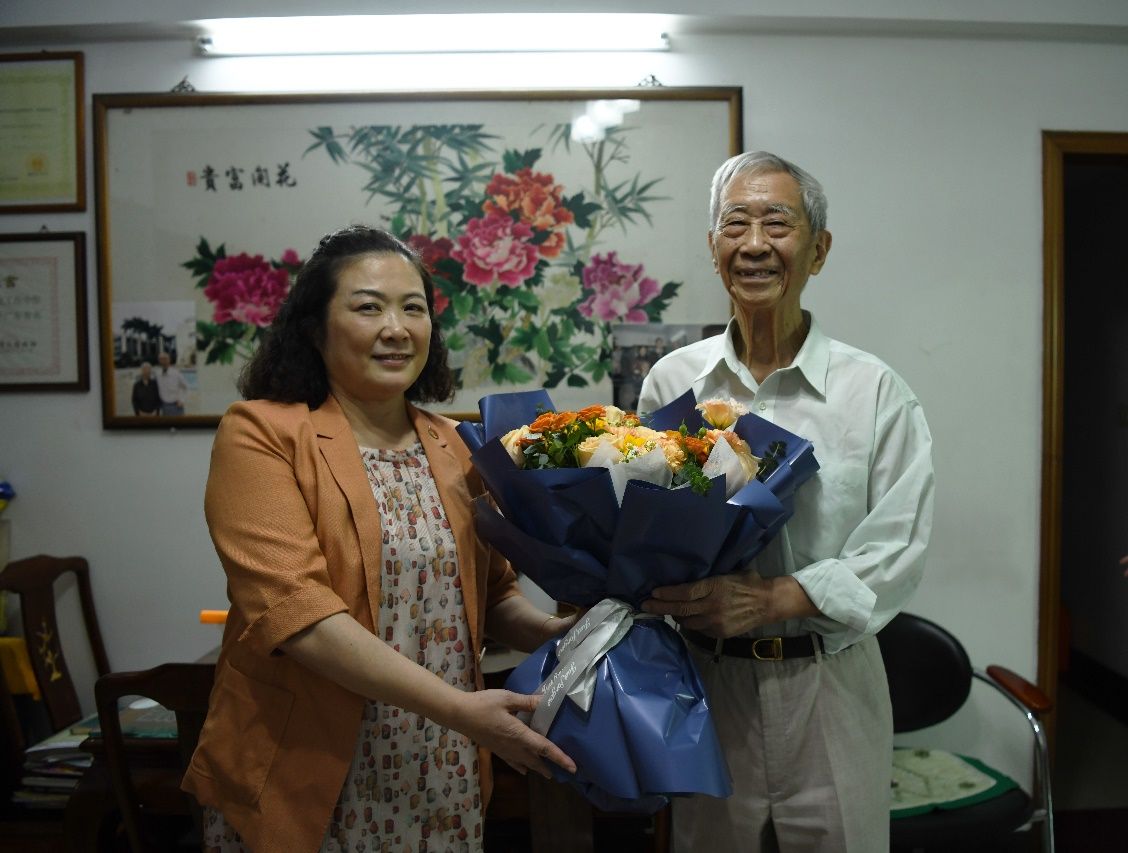 随后,潘华峰一行来到离退休教职工劳绍贤教授家中,详细询问劳教授的身体状况,并围绕“脾胃病研究”发展情况进行交流。她衷心感谢劳教授长期以来为脾胃团队建设发展所做出的贡献,叮嘱劳教授保重身体,继续为脾胃病研究和学校发展建言献策。
