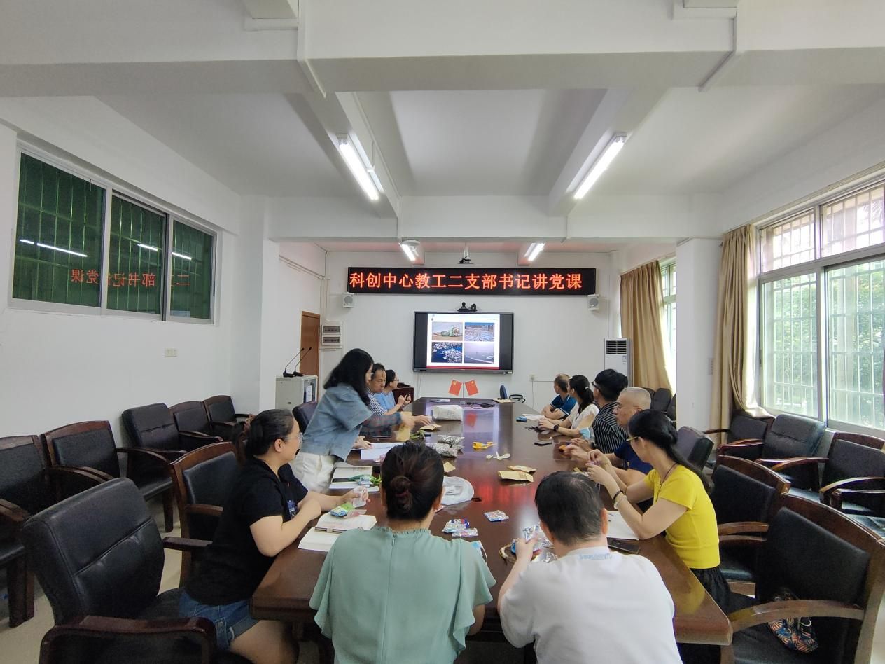 6月21日下午,科技创新中心教工第二党支部书记李燕舞在三元里校区实验楼二楼大会议室为本支部党员讲授专题党课,深入学习贯彻习近平新时代中国特色社会主义思想。