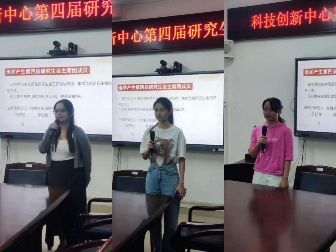 随后,会议进入了新一届研究生会主席团的选举环节。经过公平、公正、公开的投票程序,罗清漪、许舒悦当选为第四届研究生会主席团成员。新当选的主席团成员及各部门负责人发表了履职宣言,他们表示将不负众望,携手全体成员进一步优化研究生会内部结构,创新服务模式,强化内外部沟通协作,为中心师生搭建更加宽广的交流平台。