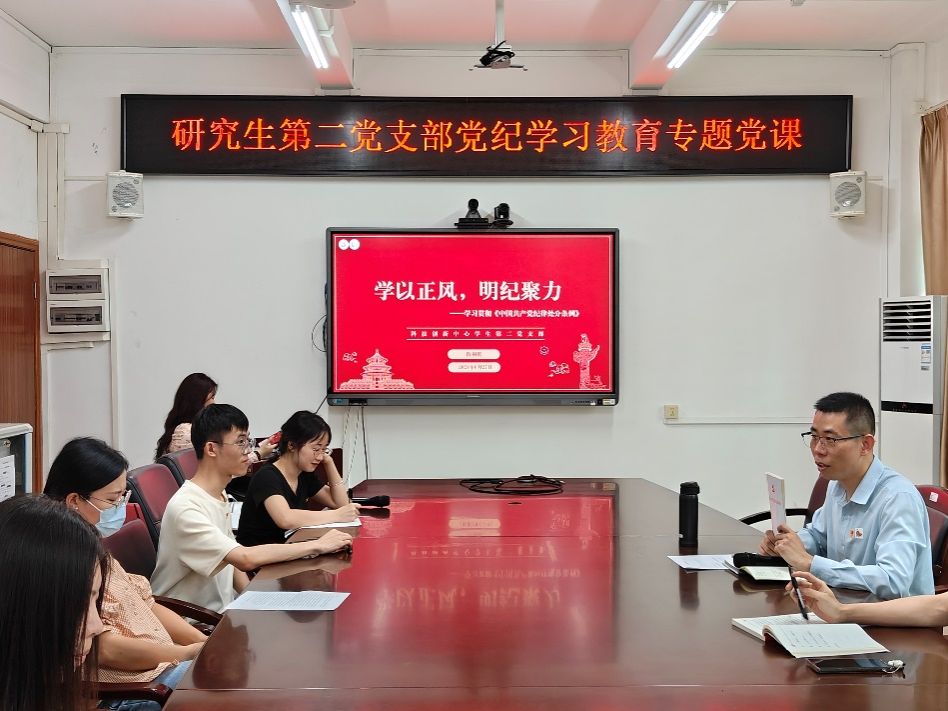 6月27日下午,科技创新中心研究生第二党支部书记陈桐楷以《学以正风,明纪聚力》为题,为党员同志讲授专题党课,深入开展党纪学习教育。