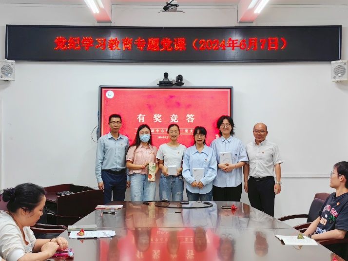 竞答题目围绕党纪学习教育活动开展的背景以及《中国共产党纪律处分条例》分则的“六大纪律”进行设计,相关学习PPT提前发给支部党员学习。正式竞答以抢答为主,由支部委员播放题目,其余党员举手抢答的方式参与竞答。活动中,大家认真聆听提问,仔细观看播放图片,沉着思考,快速应答,现场气氛十分热烈。最后,肖萌、王孔艳、曹悠悠、陈可莹四位党员获得本次有奖知识竞答优胜奖。