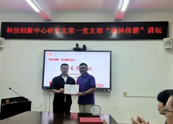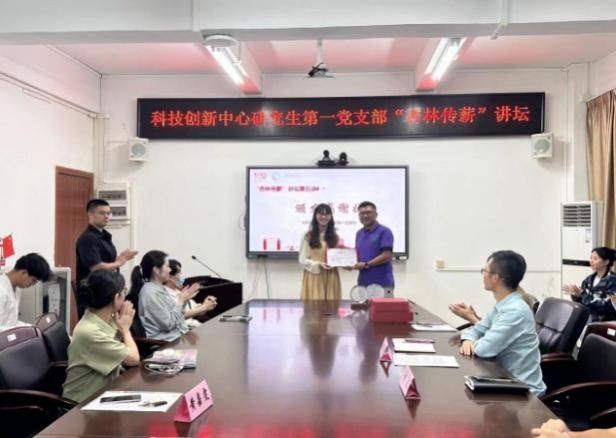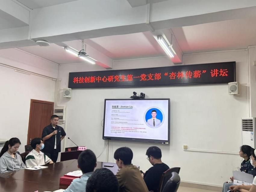 9月24日,科技创新中心研究生第一党支部以“研究生学术规划与启航”为主题举办“杏林传薪”讲坛第五讲。本次活动特别邀请科创中心毕业生刘金满博士、黄嘉文博士做主题发言,旨在帮助研究生们更好地规划学术生涯,并激发他们投身于中医药科研的热情。科技创新中心党委副书记何军,研究生第一党支部书记林传权及五十余名研究生参加本次活动。